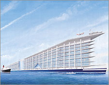 Less of a big boat and more a floating city, this 1400 metre long behemoth is set to house its own population, complete with hospitals, schools, churches, casinos, park, shopping centres, currency, railway and airport. Planned to perpetually circumnavigate the globe with its permanent population of 18,000 souls, this would-be tax haven is currently under construction and coming soon to an ocean near you.